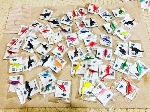 今年もPTAとしてバッチなどを販売します。 メインはむかわ竜のピンバッチ。170個くらいあります。 あと、以前から作っている普通サイズの恐竜バッチが70個くらいあります。最近の作った物も出したいな〜。全部で300個くらいになります。 むかわ竜のピンバッ…